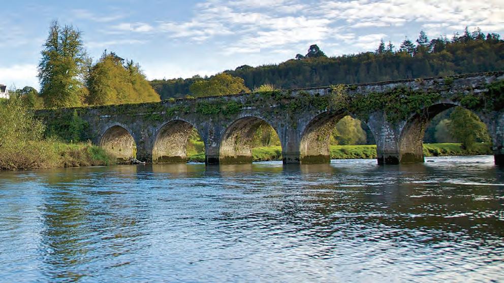 Ruth Freeman then descends into the village of Inistioge [pictured] on her way to historic Woodstock Gardens and Arboretum which is now on the route of this trail, the South Leinster Way. The gardens which overlook the Nore Valley were restored to the period of 1840-1890 with every effort being made to use plants and materials typical of the era.