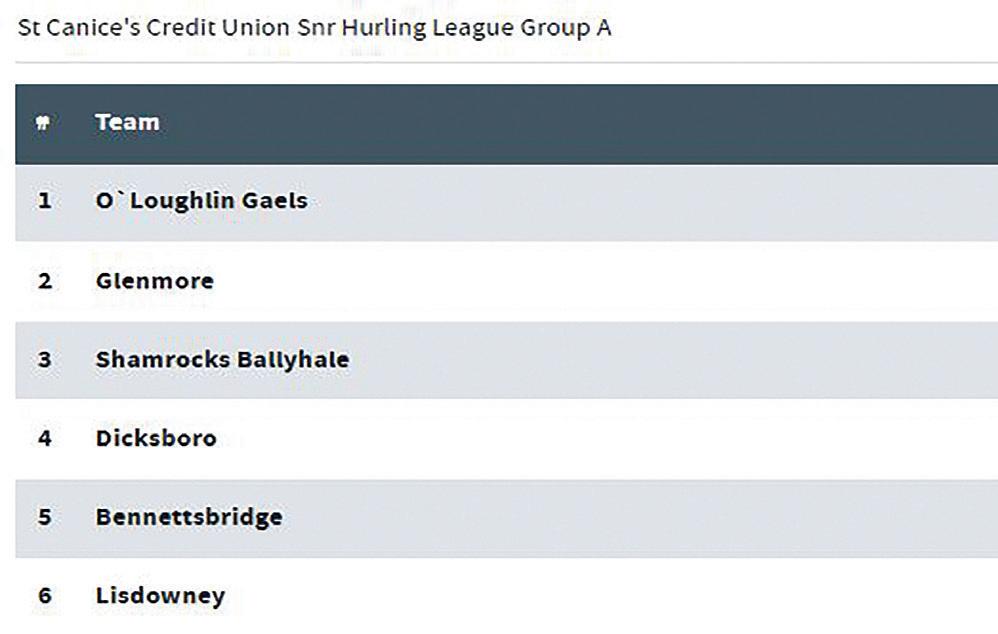 While O’Loughlin Gaels and Thomastown remain the only unbeaten sides in the county at this level, only Noel Doherty’s charges cannot be caught as they sit 3 points clear of second place Mullinavat. In Group A, Brian Hogan’s charges are two points ahead of Glenmore, whose only defeat came at the hands of the St John’s Park side in round 1 almost a month ago at the home of the Vegas Boys. This headto-head stat should see the current league champions face off against The Town in the league final. But before we get to that, there are many other pressing issues to be decided tomorrow afternoon.