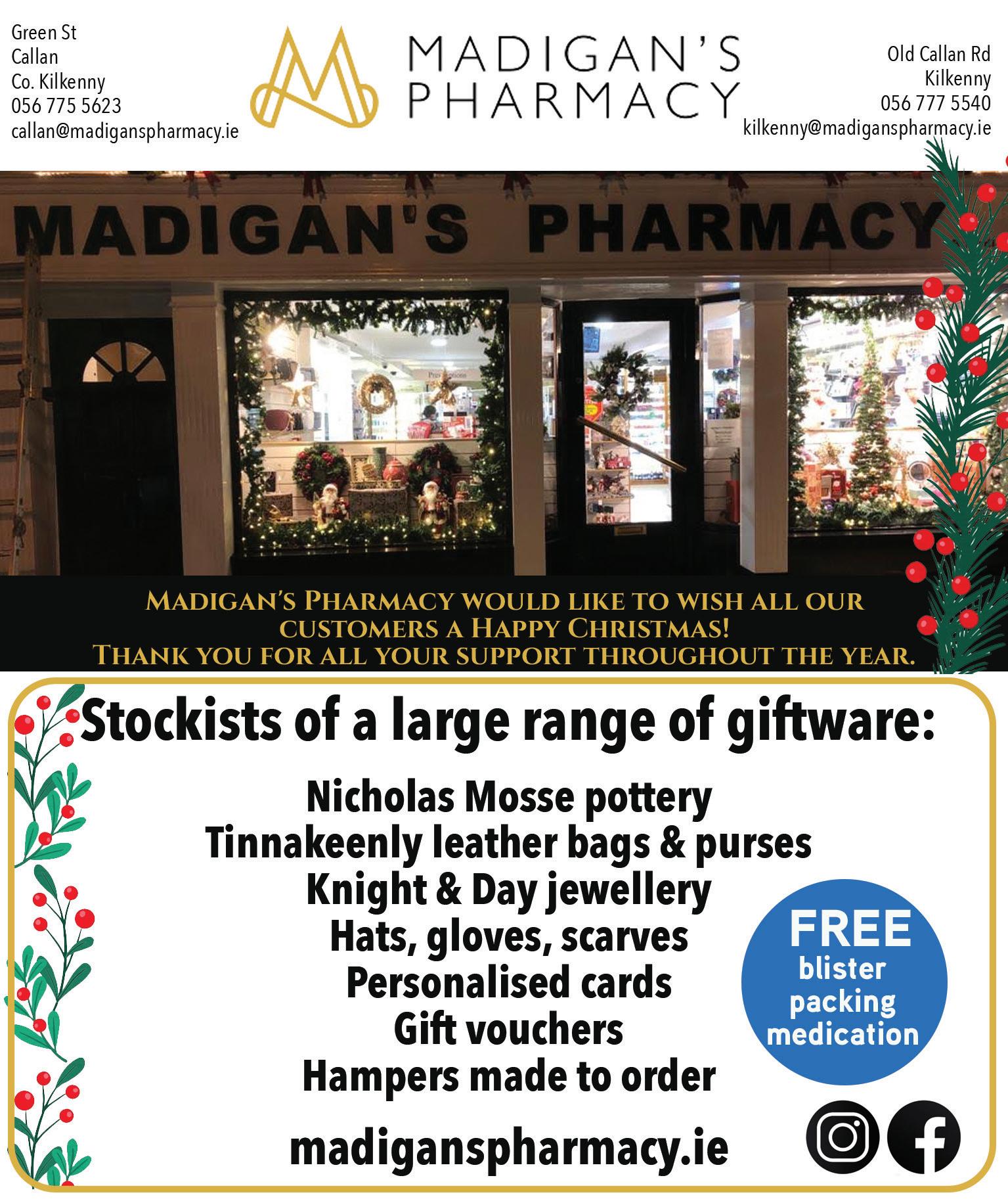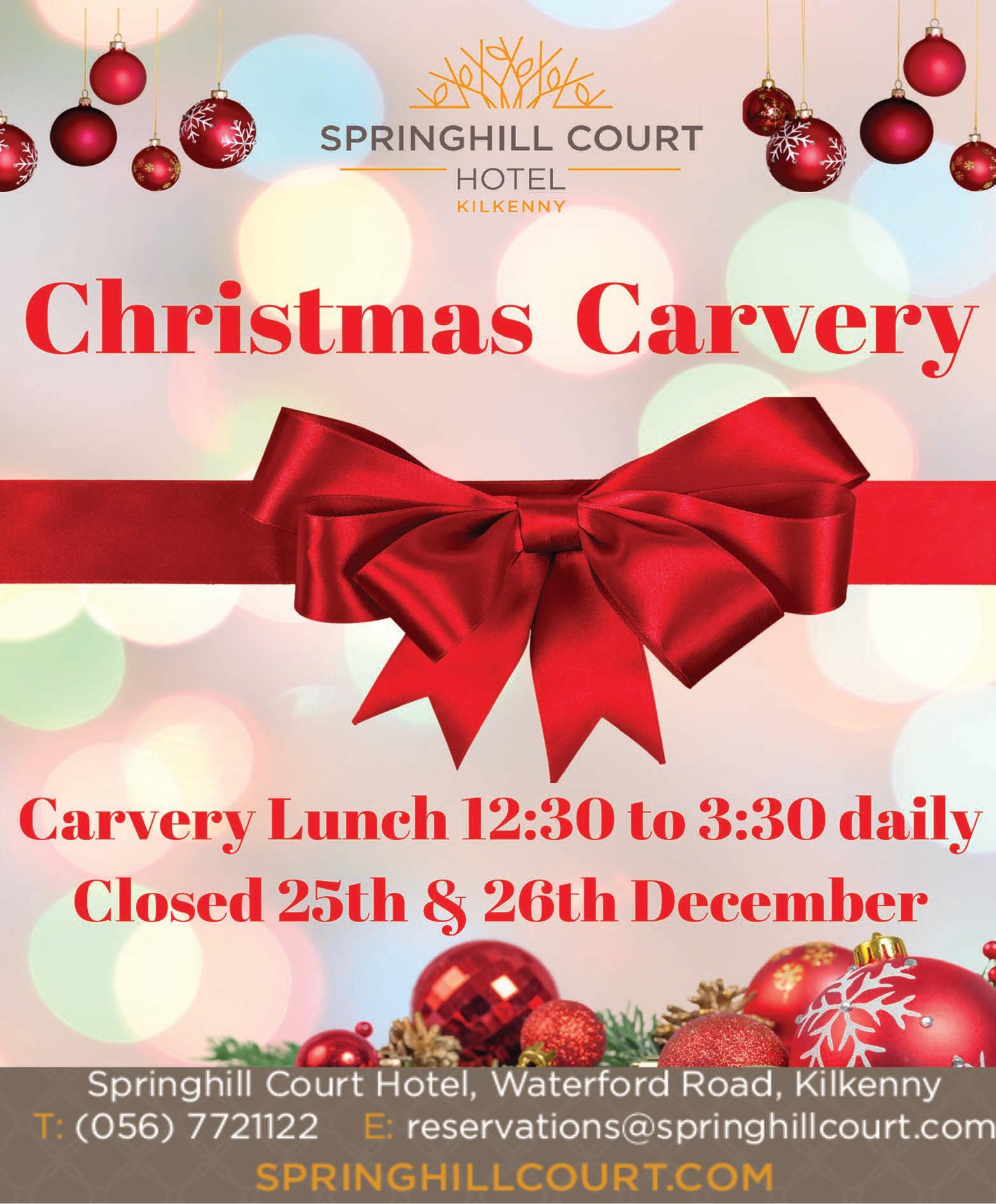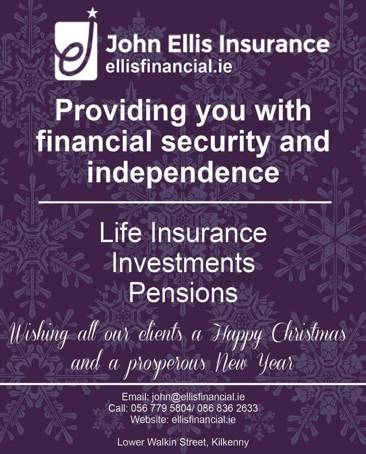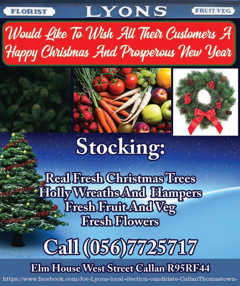 Dunnamaggin Development Group wish to thank everyone who attended our first Christmas Event in Madges Garden. An especially loud thank you to the boys and girls of St Leonard’s NS who sang beauti fully and to their teacher’s. A lovely evening was had by all who came. A second big Thank You to all who supported our fourth Christmas Market on Sunday last, especially to Santa Claus who arrived via Gerry’s tractor driven this year by his son Liam. Santa could stay again this year to take note of all the children’s Christmas wishes and gave them a gi of a selection box kindly sponsored by PM Securities. He also picked the winners of the Children’s Colouring competition - congratula tions to Leah and Liam from St Leonard’s NS and Sean and Neidín from St Eoghan’s in Kilmoganny. The hall was full of stalls selling Christmas gi s, Kathleen did a trojan job of selling tickets for the monster ra le whose proceeds will be split between DDG and St Joseph’s Home. Eamo’s Beef Stew went down a treat. Thank you to everyone who volunteered on the day, with set up, who sponsored a ra le prize and everyone who supported us last Sunday and throughout the year. We are taking a break and will be back in the New Year. DDG wish everyone a happy Christmas and a wonderful 2023.