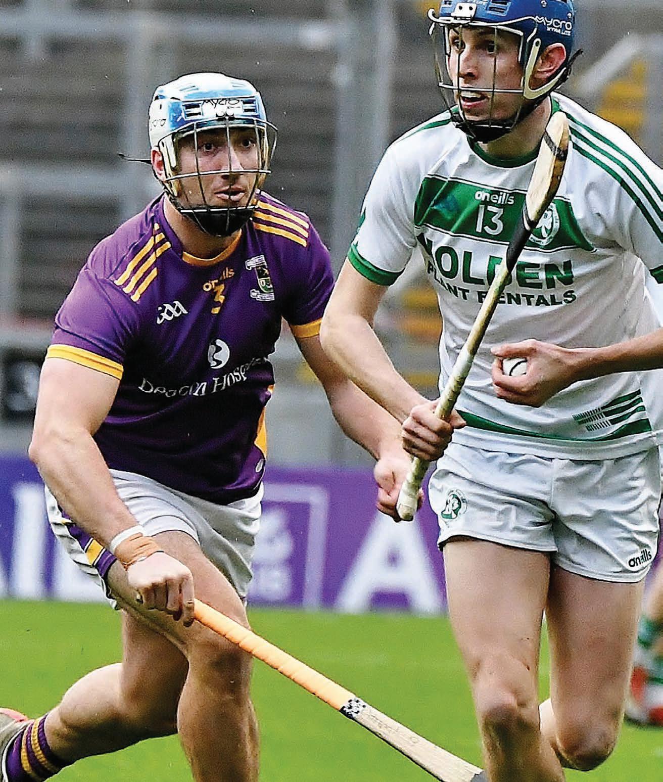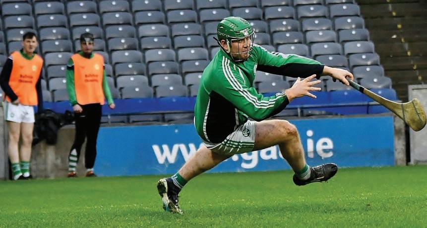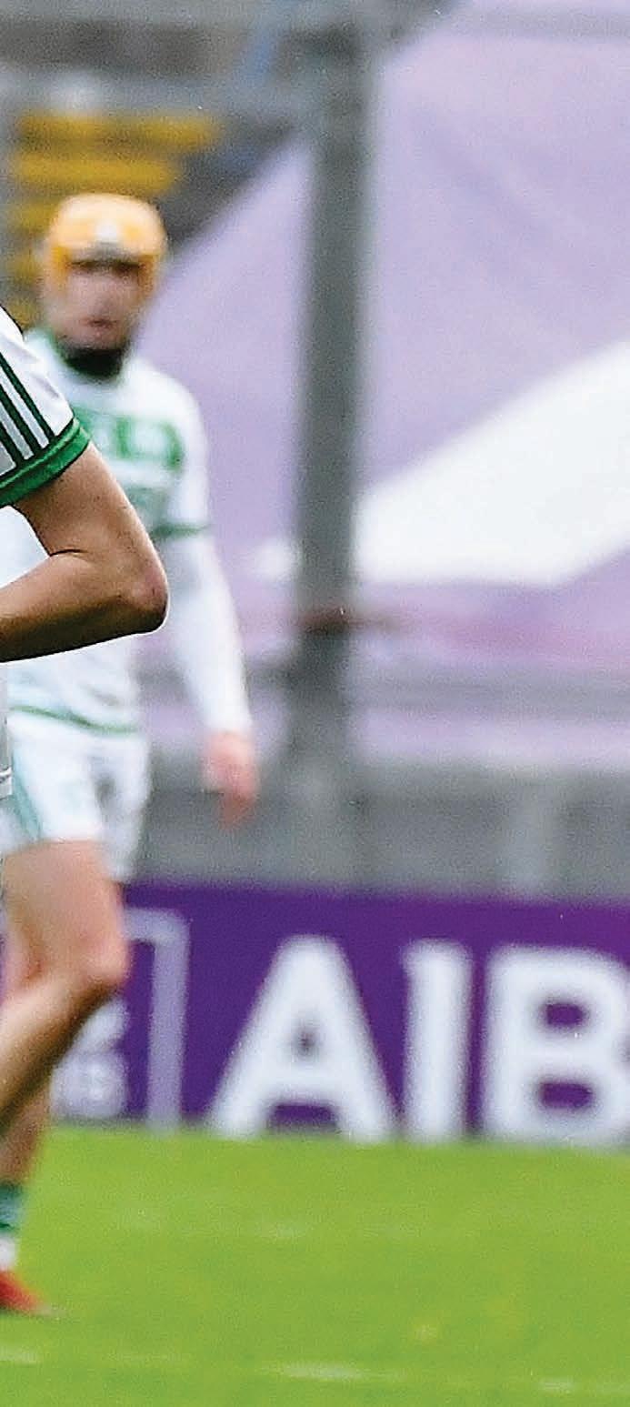 Paddy Mullan then joined his brother Adrian in the referee’s notebook on 42 minutes as Shamrocks struggled to quell the Crokes threat. O’Rorke popped over the free awarded and then Dara Purcell added another ne point to his tally. It was all Kilmacud. Ballyhale were struggling to retain possession, as the wind really began to have an in uence on the game. Adrian Mullen was then stopped illegally in his tracks and TJ Reid slotted the placed ball over the bar for a muchneeded score for the Kilkenny side. Dean Mason was then called into action again, this time denying a certain goal for the impressive Alex Considine with a brilliant piece of net-minding. Oisin O’Rorke scored from the resulting ‘65. e Ballyhale lead was reduced to just one point in the 47th minute when a long ball out of the Crokes defence was diverted o Joey Holden into the path of that man Considine who beat Darren Mullen