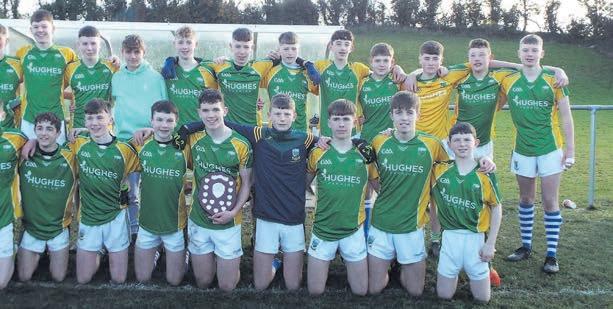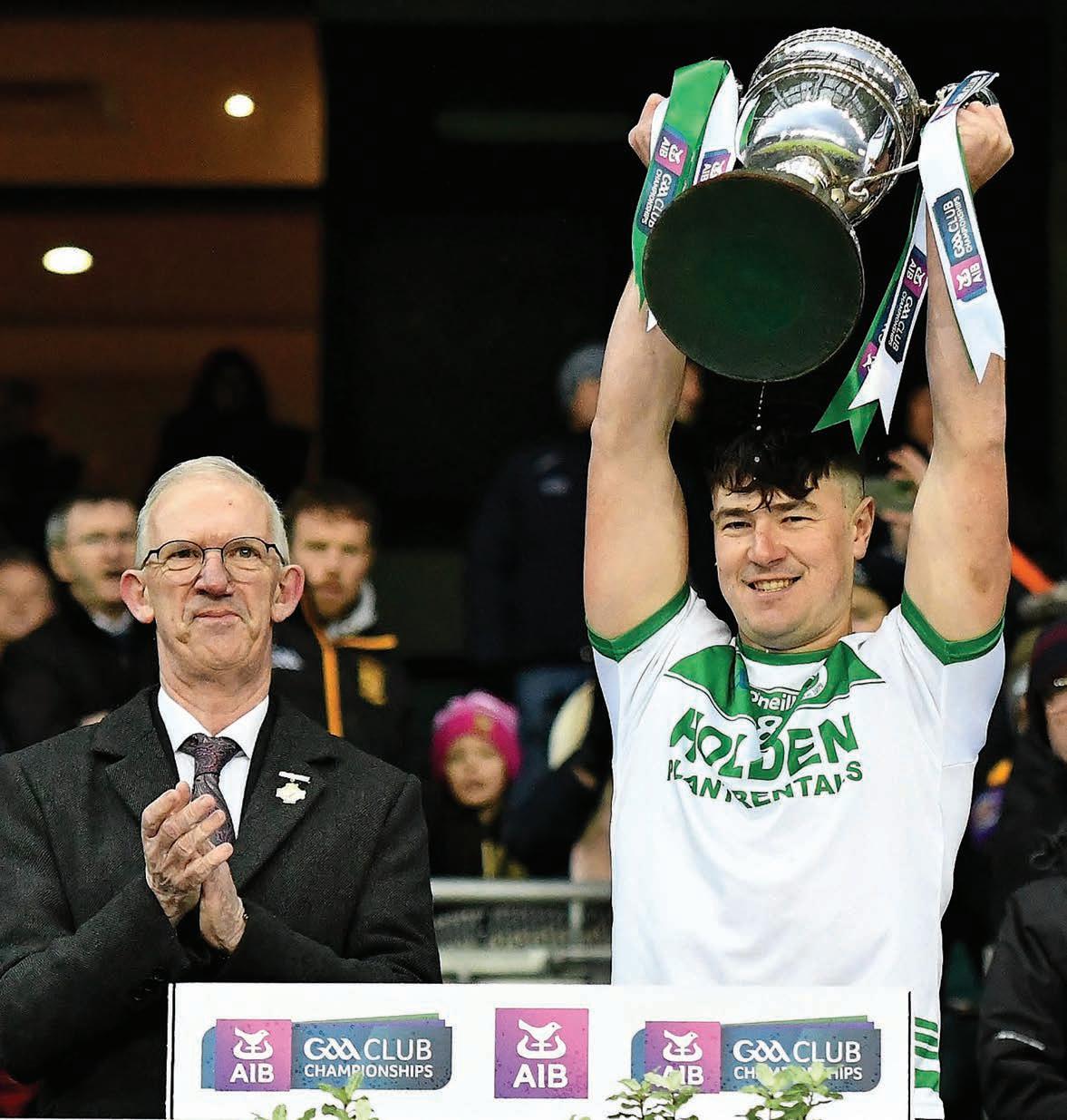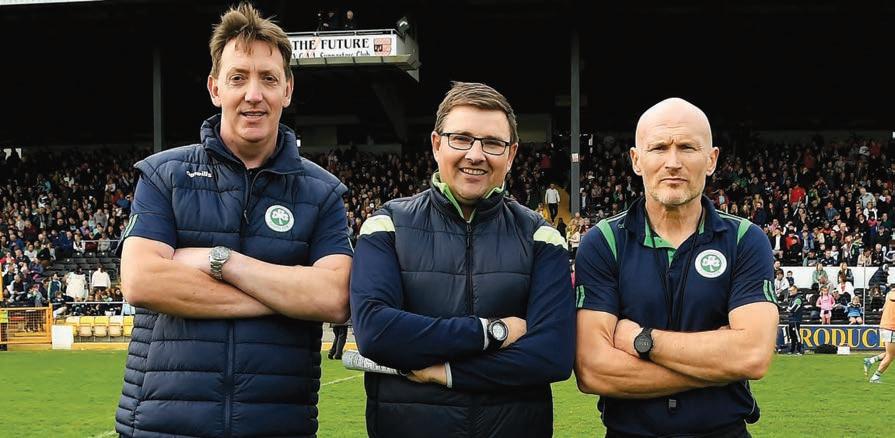 Shamrocks would also get the next two score’s – the rst came when Joe Cuddihy won the ball and was forced to retreat. Hor laid the ball back to Richie Reid who struck a brilliant e ort from halfway. Richie then picked up the ball following a nice turnover. He gave a nice hand pass to Adrian Mullen who wasted no time in striking a glorious point from tight to the sideline from round-a-bout half way. Magni cent.