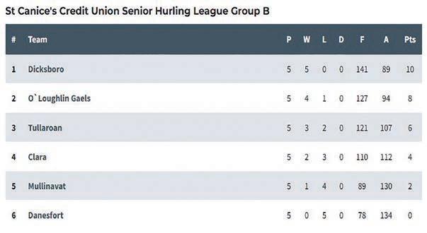 e league decider will see group winners Glenmore take on Dicksboro, while the Shield nal will be a city derby battle between James Stephens and O’Loughlin Gaels. Four of our senior sides go straight through to round 1 of the championship with Tullaroan facing Bennettsbridge and Clara meeting