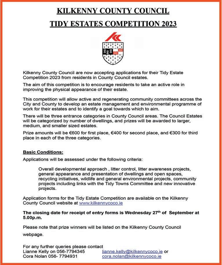 The first draw for St. Mary’s Cathedral Restoration Fund 2023/2024 year is due to take place on Wednesday 27th.September 2023. The draw year 2023/20224 will run from September 2023 to August 2024. Draw will be held at 8.00p.m on the last Wednesday of each month. Tickets are available at the Parish House, Hugginstown: Telephone contact 056 776 8693. All Tickets to be entered by Monday 25th. September if you wish to be part of the First Draw on Wednesday 27th. Subscription €10.00 per month: Prize Money €5,000.00 per month. Roman Catholic Diocese and Parishes of Ossory - Registered Charity No. 20015831