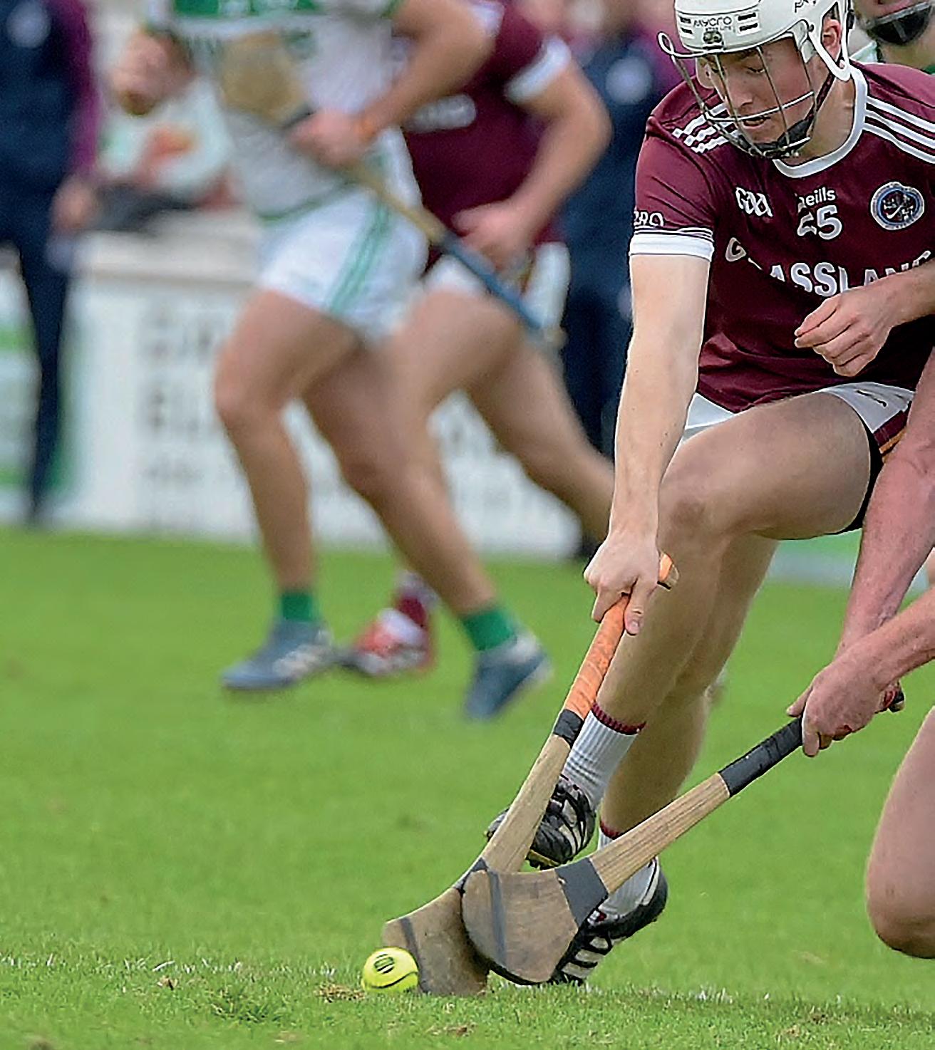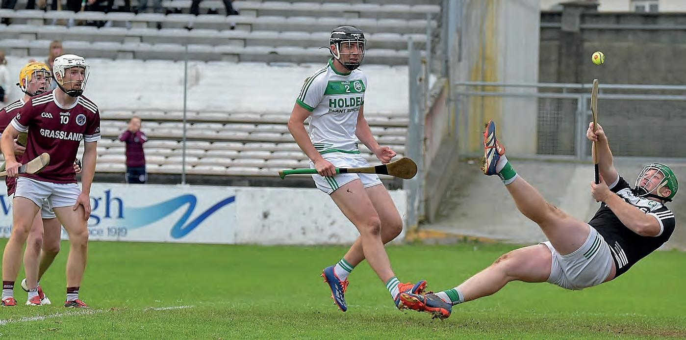 ball over the bar. Mark Bergin then converted a placed ball after Ger Malone took one to many swipes at the on running O’Shea. Some great blocking from Conor Kelly then gave Mark Bergin the chance to split the posts from play and this put the St John’s Park side 2 ahead. Ger Malone then got a point after some good closing down by his teammates. Some nice movement from Owen Wall saw him collect the ball and off load to Conor Kelly and the result was a lovely point from out the field. The next point also came from The Loughs. Luke Hogan and Tom Aylward battled for possession under the old stand, and it was the intercounty panelist that won the