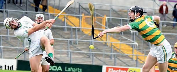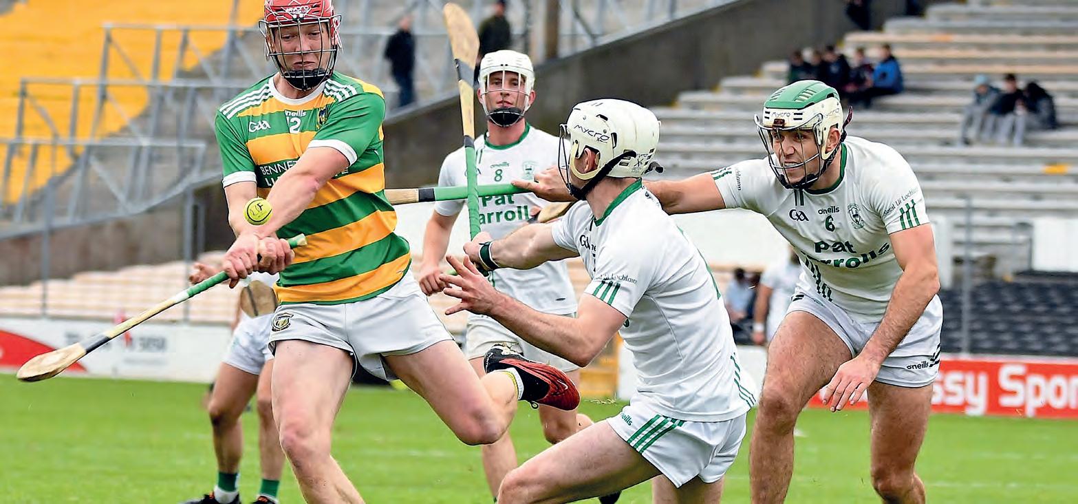 round, last year’s county captain sent over a booming score to leave is side firmly in control with half time only a few minutes away. The impressive Fionan Mackessy then popped over another free after Owen Wall was stopped in his tracks as he looked to drive forward. A second major almost arrived before the short whistle sounded, as Enda Cleere advanced quickly off his line to snuff out the danger from Sean Bolgers attempted strike on goal. Bolger then set up Conor Heary for a fine point as he slipped the ball to the hard-working Heary who batted over to make it double scores. Brian Hogan was then forced to make a change before the interval, when Luke Hogan pulled up sharpish with what looked like a hamstring injury and was replaced by Eoin O’Shea. The last score of the first period came from the hurl of Nicky Cleere from a ‘65 as O’Loughlin’s went into the changing rooms with a 5-point lead. When play resumed, Bennettsbridge struck first, a free from half way, converted by Nicky Cleere. The same player reduced his sides deficit to three points shortly after, intercepting Tony Forristal’s clearance before striking over. Just the start that Tim Dooley and Dan Shanahan would have wanted from their charges. O’Loughlin’s got the scoreboard moving in the second half from their top scorer, Fionan Mackessy who struck over another free, effortlessly from distance. A second burst forward from midfield by Kevin Blanchfield saw the Bridge man impeded and Nicky Cleere did the rest from the resulting free. Owen Wall then took a great score, having taken a whack from Conor Murphy and escaping the clutches of Ciaran Brennan. Referee Conor Everard issued a yellow card to the former before play resumed. Another barnstorming run from Conor Heary resulted in the O’Loughlin’s man being fouled, and this gave Fionan Mackessy a chance to increase his personal tally, a chance that he wasn’t going to