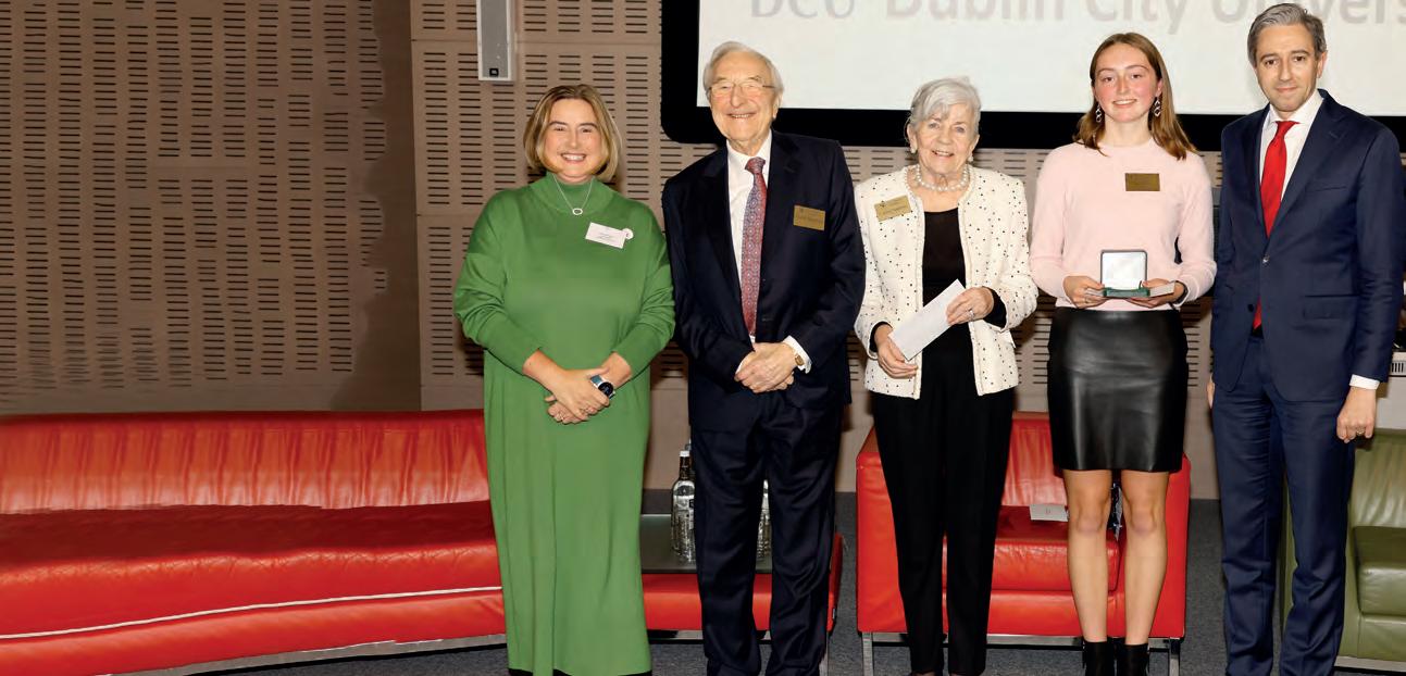 Kilkenny Student Leia Hill has been awarded a Naughton Foundation Scholarship worth €24,000 at a recent ceremony in the Trinity Business School in Dublin. The award was presented by founding patrons of the Naughton Foundation, Dr Martin Naughton, and his wife Carmel, who were joined by An Taoiseach Mr Simon Harris [all pictured] to present winning students with their awards.