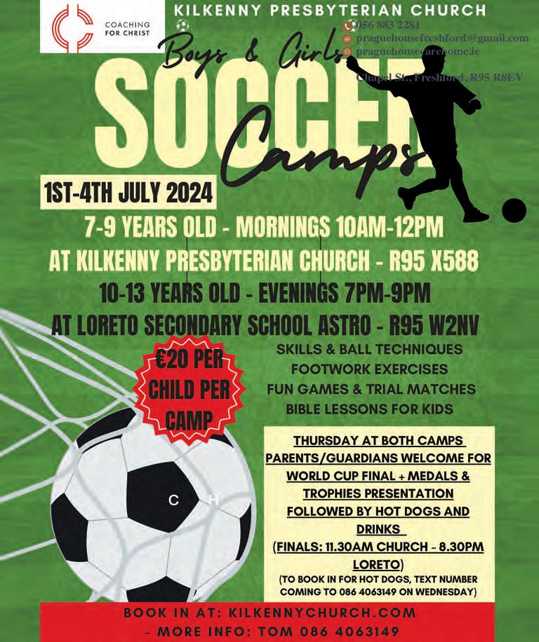 Applications are invited for the Vacant Tenancy of a onebedroom house at St Kieran’s Place, Urlingford. To be eligible to apply you must be on the Kilkenny County Council Housing list. Applications are available from the Centre.