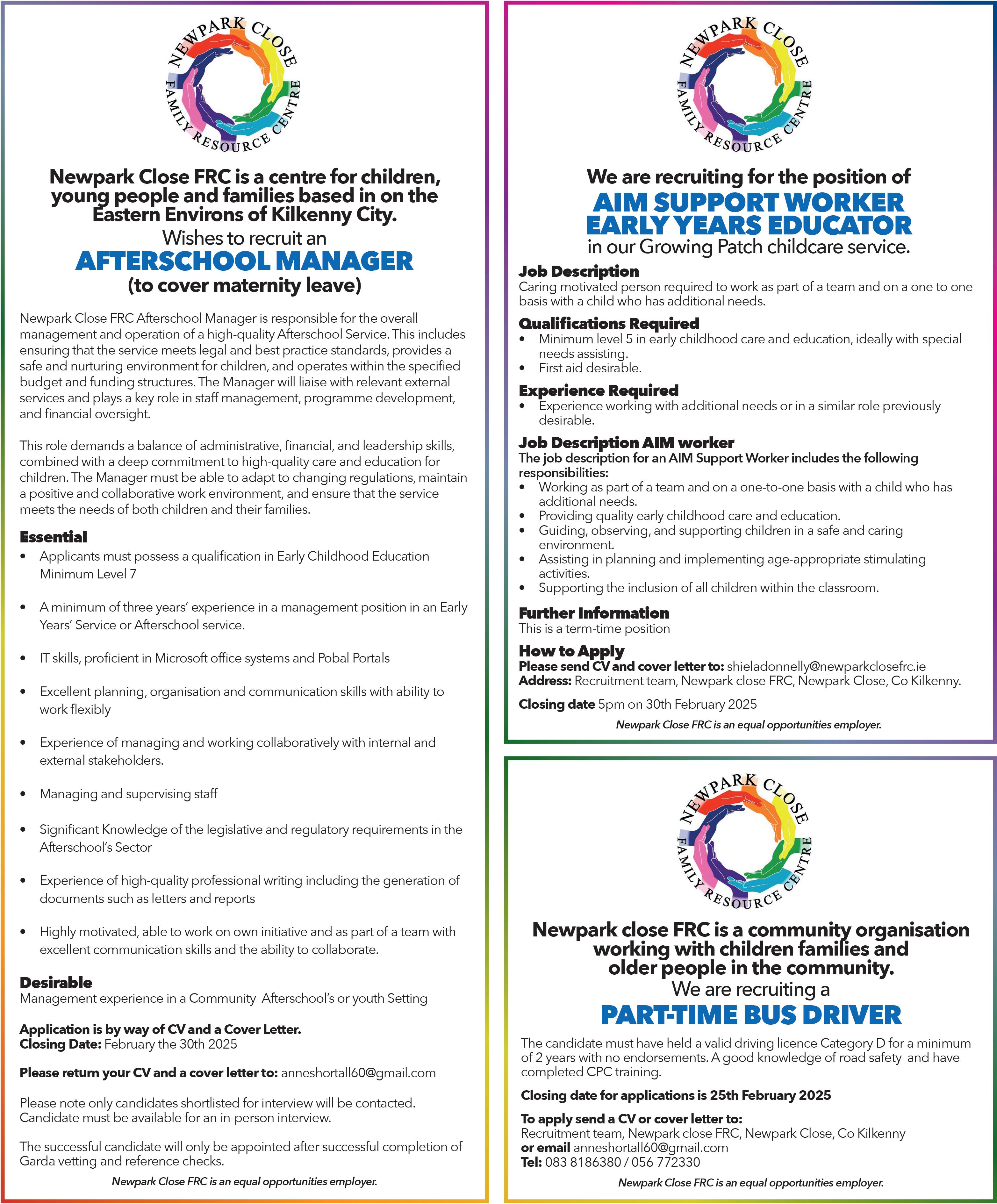 Breakfast Club and After School Club are now taking enrolments for September 2025. Contact: mbrennan@newmarketns.ie or 056 776 8919.