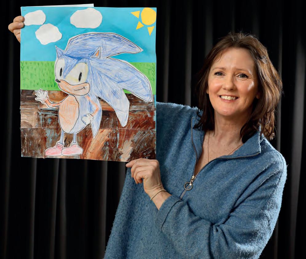 adjudicator, Tara ButlerFrey admiring one of the entries received from Kilkenny this year – a work entitled ‘Sonic’ by a pupil from Kilkenny City Vocational School.