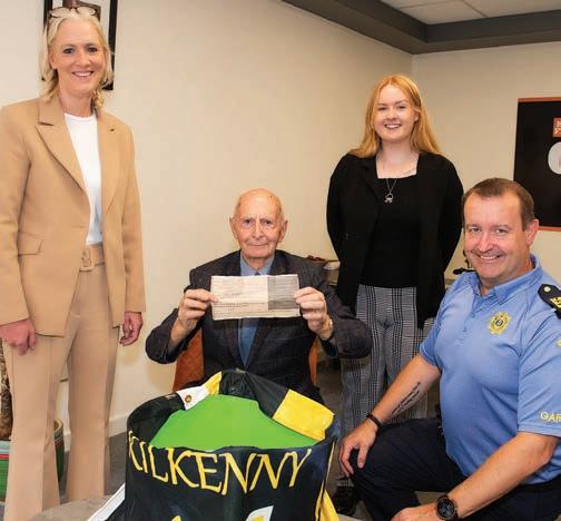 Limerick completed an All-Ireland 4-in-a-row for only the third time in championship history when they defeated Kilkenny with a blistering second half display at Croke Park last Sunday. Trailing by 3 points at the interval, John Kiely’s men notched 21 points after the short whistle to rubber-stamp their place in hurling folklore as they proved a bridge to far for Derek Lyng’s Cats in front of a capacity crowd at headquarters. An early major in the second period from O’Loughlin’s Paddy Deegan appeared to stir e Treaty into top gear and they restricted the Noresiders to just ve further points over the rest of the match. By the time Wicklow whistler John Keenan blew to signal the end of the 2023 nal, Limerick were nine points to the good, worthy champions, again. Derek Lyng was dealt a blow before the o when David Blanch eld was ruled out of the 26-man squad with the injury sustained in their semi- nal win over Clare. e Bennettsbridge man was replaced in the starting line-up by Walter Walsh, a change which saw Erins Own’s Conor Fogarty drop into the half-back line. Conahy Shamrocks Tom Phelan appeared to operate from a deeper middle third position, while Wally occupied a wing-forward role.