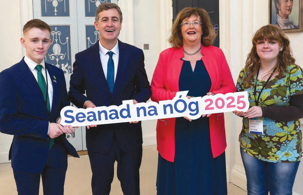 Cathaoirleach and LeasChathaoirleach of Seanad Éireann Senator Mark Daly and Senator Maria Byrne and Minister for Children, Disability and Equality Norma Foley recently welcomed the second Seanad na nÓg event. This event brought together 60 delegates under the age of 18 from Comhairle na nÓg and other organisations to discuss their priorities for the Government to consider in advance of Ireland’s EU Presidency in 2026.
