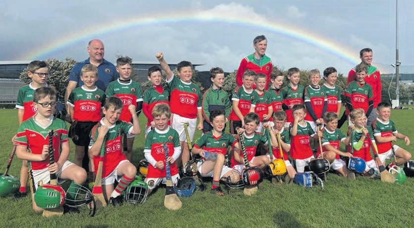 Michael Walsh’s charges then red over a brace of their own, Shane Stapleton and captain Bill Sheehan with points to take their side into a 5-point lead. It was looking all too easy for the Palmerstown out t as their pace and movement were causing their opponents problems all over the pitch. Bob Aylward’s men needed to nd some rhythm and fast to prevent the game getting away from them in the opening period and they did just that with three scores on the bounce from Ian Byrne, Alan Murphy (f) and a classy strike from talisman Ger Aylward tight to the left sideline to reduce the ‘Boro lead to just 2 points.