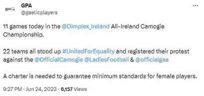 Both governing bodies representing camogie and ladies football have been more than behind the ball on this, having been noti ed by the players as early as April that they would play out the remainder of the 2023 championships ‘under protest’.