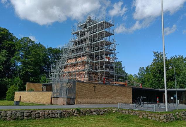 Selv tårnet vil blive malet to gange over sommeren, og stilladset forventes nedtaget igen i løbet af efteråret.