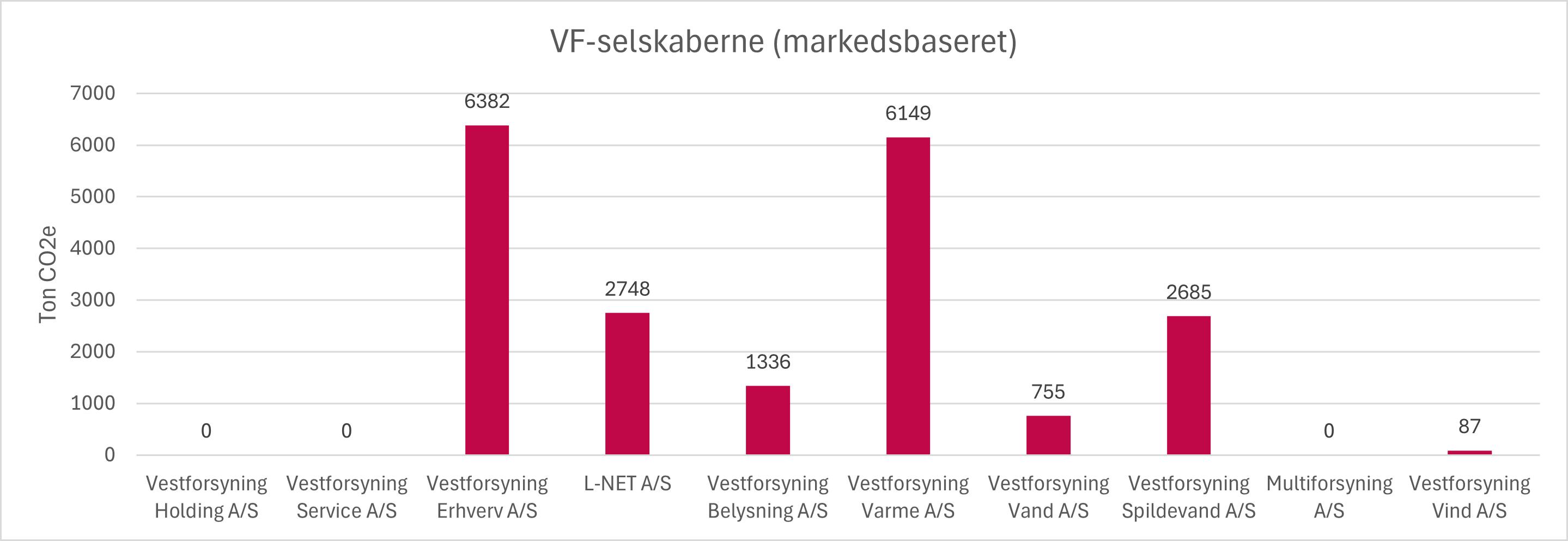 Opgørelse af CO2e-udledningen fra Vestforsyning-selskaberne for 2022 viser, at de største udledninger stammer fra Vestforsyning Erhverv A/S, Vestforsyning Varme A/S, Vestforsyning Spildevand A/S og L-NET A/S. Den samlede udledning i 2022 udgør ca. 20.150 ton CO2e.