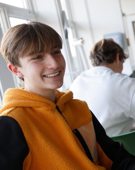 Jeg har aldrig været i tvivl om, at jeg skulle på stx. Jeg kendte gymnasiet og vidste på forhånd, at det er et godt sted både fagligt og socialt. I de sidste år af folkeskolen blev jeg interesseret i naturvidenskab, og selvom jeg fak tisk var lidt i tvivl, om jeg skulle vælge en naturvidenskabelig studieretning her på gymnasiet, er jeg nu helt sikker på, at jeg har valgt rigtigt. Jeg vil også helt sikkert tage en naturvidenskabelig uddannelse efter gymnasiet. Jeg er ordblind, men jeg oplever overhovedet ikke, at det er et problem i hverda gen, og jeg klarer mig rigtig godt fagligt. Det bedste ved gymnasiet er mixet af sociale aktiviteter og fagligt højt niveau. Vi hygger os og kender alle, fordi gymnasiet har den størrelse, det har.