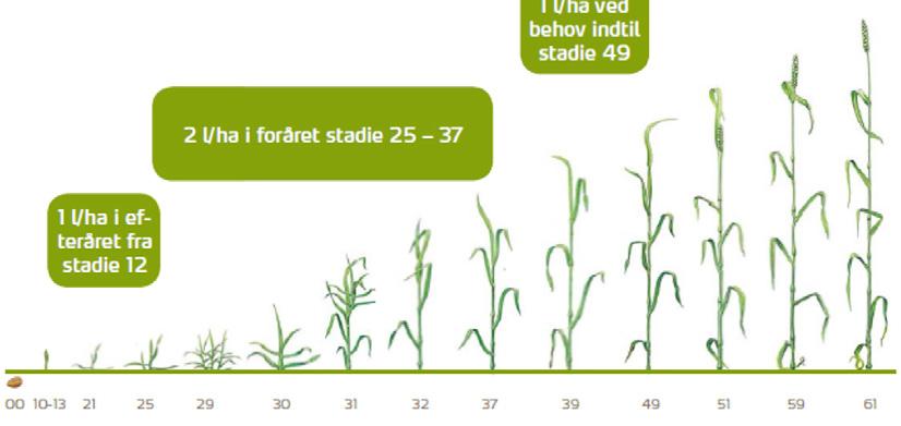 Dosering 1,7 l/ha via gylletanken, med gyllevognen eller med marksprøjten