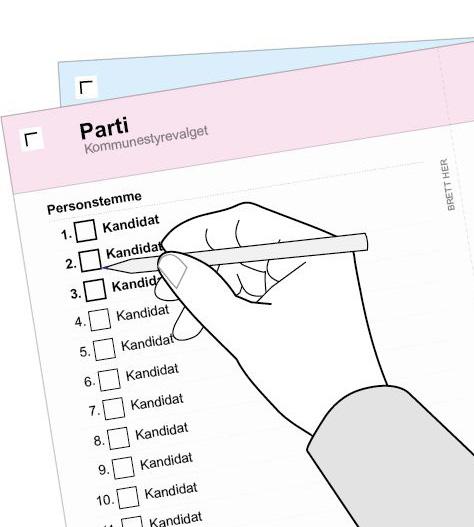 I kommunevalet kan du retta på røystesetlane (vegleiing står på røystesetlane):