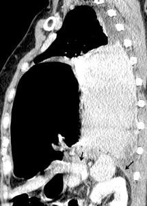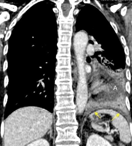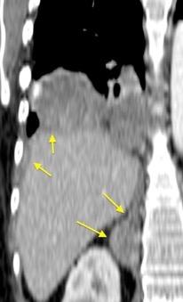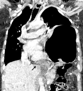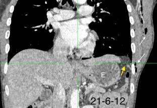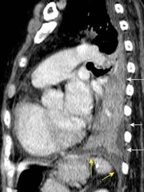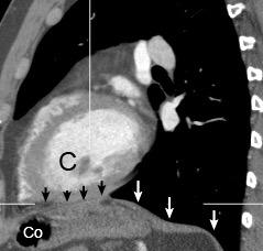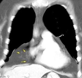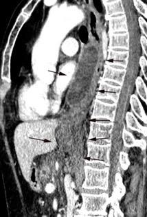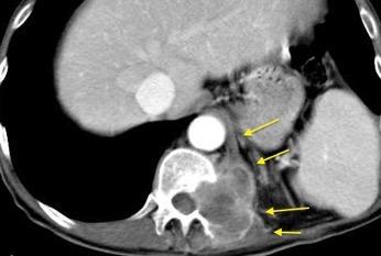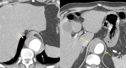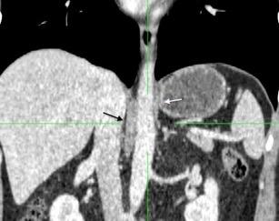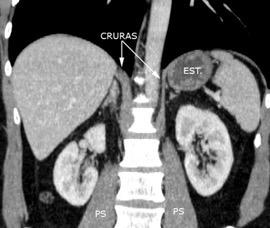 Panda A et al. “Straddling Across Boundaries”. Thoracoabdominal Lesions: Spectrum and Pattern Approach. Curr Probl Diagn Radiol, 2015 /Restrepo CS et al. The diaphragmatic crura and retrocrural space: normal imaging appearance, variants, and pathologic conditions. Radiographics 2008