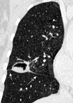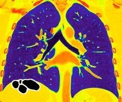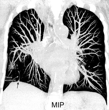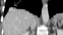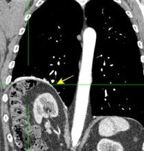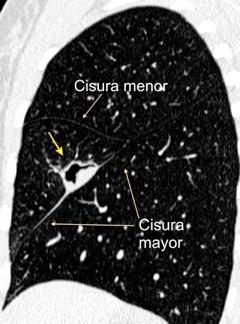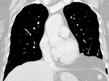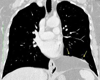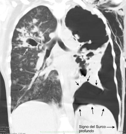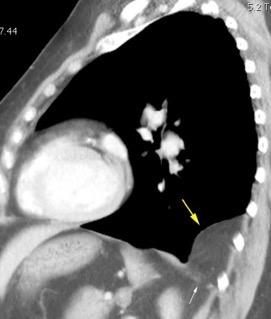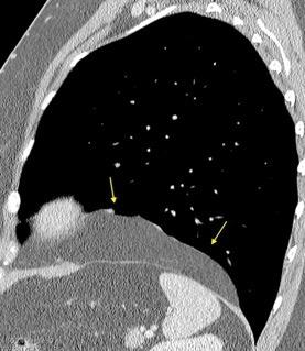 Cortes sagitales y coronales: Interrupción de la línea diafragmática