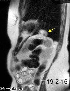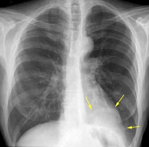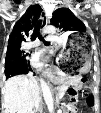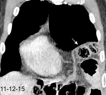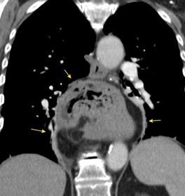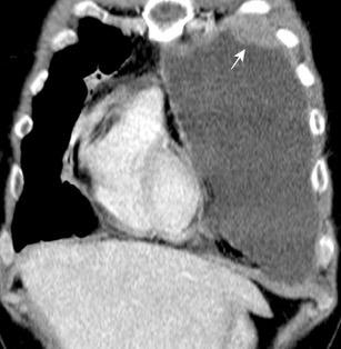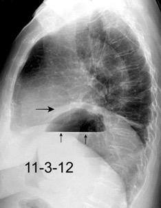 Masa retrocardiaca, habitualmente asintomática. Puede tener nivel hidro-aéreo Muller-Silva. High-yield Imaging. Saunders 2010