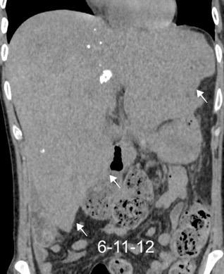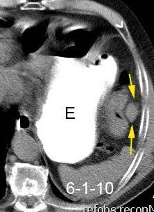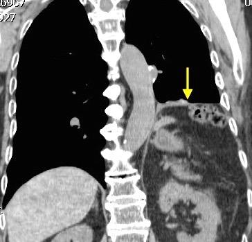 Desser TS et al.The dangling diaphragm sign: sensitivity and comparison with existing CT signs of blunt traumatic diaphragmatic rupture. Emerg Radiol 2010