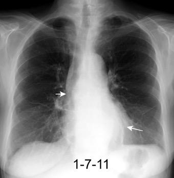 RX. Masa bien definida (mejor en lateral en 33% de los casos). Localizado en cisuras o superficies pleurales. (regiones declive).