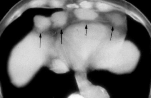 2. Tumor mediastínico maligno. P. ej.: timoma