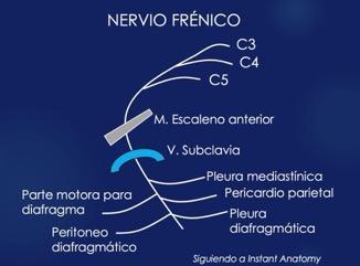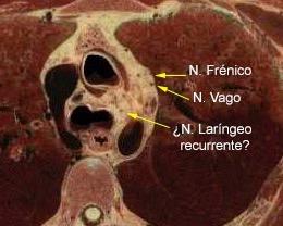 Entra al tórax posterior al TBVI. Desciende lateral al arco aórtico, aurícula izquierda y VI.