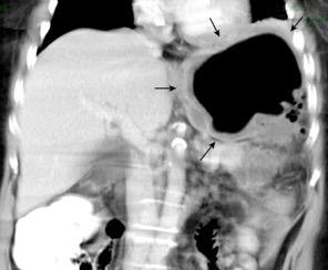 Incarceración de órganos abdominales, perforación y vólvulo gástrico.