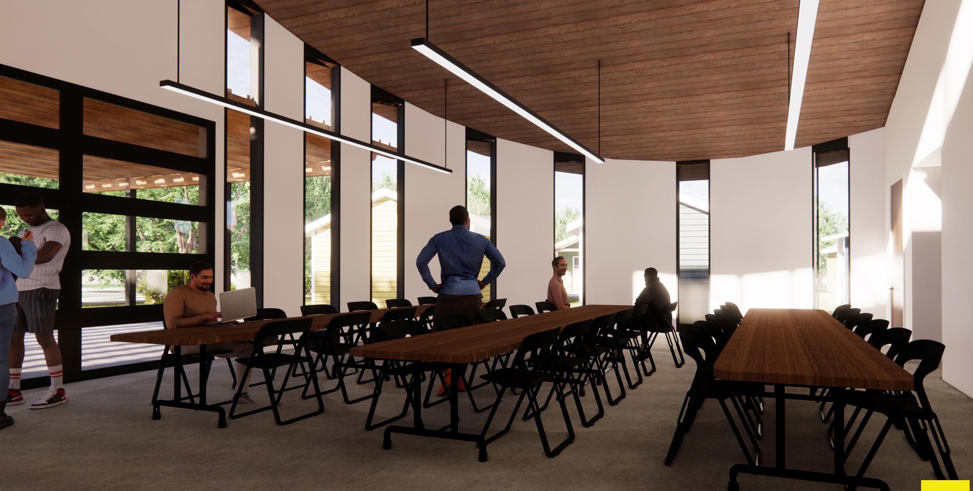 The Community Center is "base camp" for VCP Village residents. The Center features a large gathering space, medical offices, a pet center, commercial kitchen, and offices for onsite support staff.