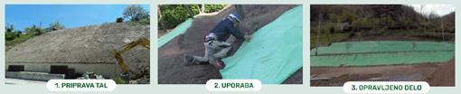 Biotekstil izrađen od potpuno bioloških razgradivih celuloznih vlakana, nježno zelene boje, prethodno posijan visokokvalitetnim sjemenkama, granuliranim gnojivima i poboljšivačima tla, bez upotrebe ljepila, mreža, sintetičkih vlakana ili folija. Koristi se za pokrivanje padina i obala te za kontrolu erozije izazvane kišom i vodnim tokovima na terenima, uključujući i strme padine.