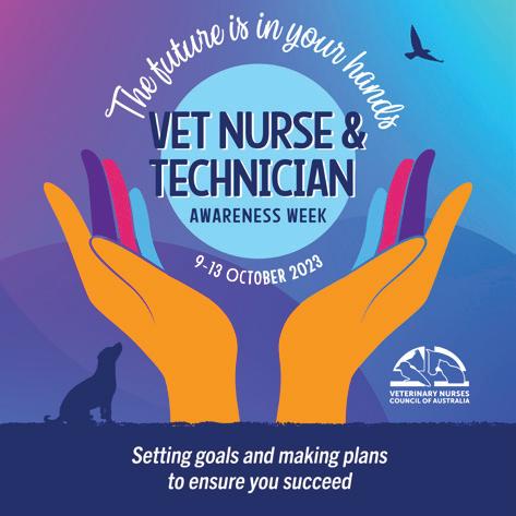 The Official Journal of the Veterinary Nurses Council of Australia Inc. Reg. No. A0031255G ABN 45 288948433 VOL. 29 • NO. 3 • SEPTEMBER 2023 THE AUSTRALIAN VETERINARY NURSES JOURNAL Just breathe: Mechanical ventilation for small animals Principles of community-centred veterinary care Common presentations of avian emergencies Get ready to celebrate Veterinary Nurse & Technician Awareness Week Thefuture is in yourhand s AWARENESS WEEK VET NURSE & VET NURSE & TECHNICIAN TECHNICIAN 9-13 Oct o ber 2023