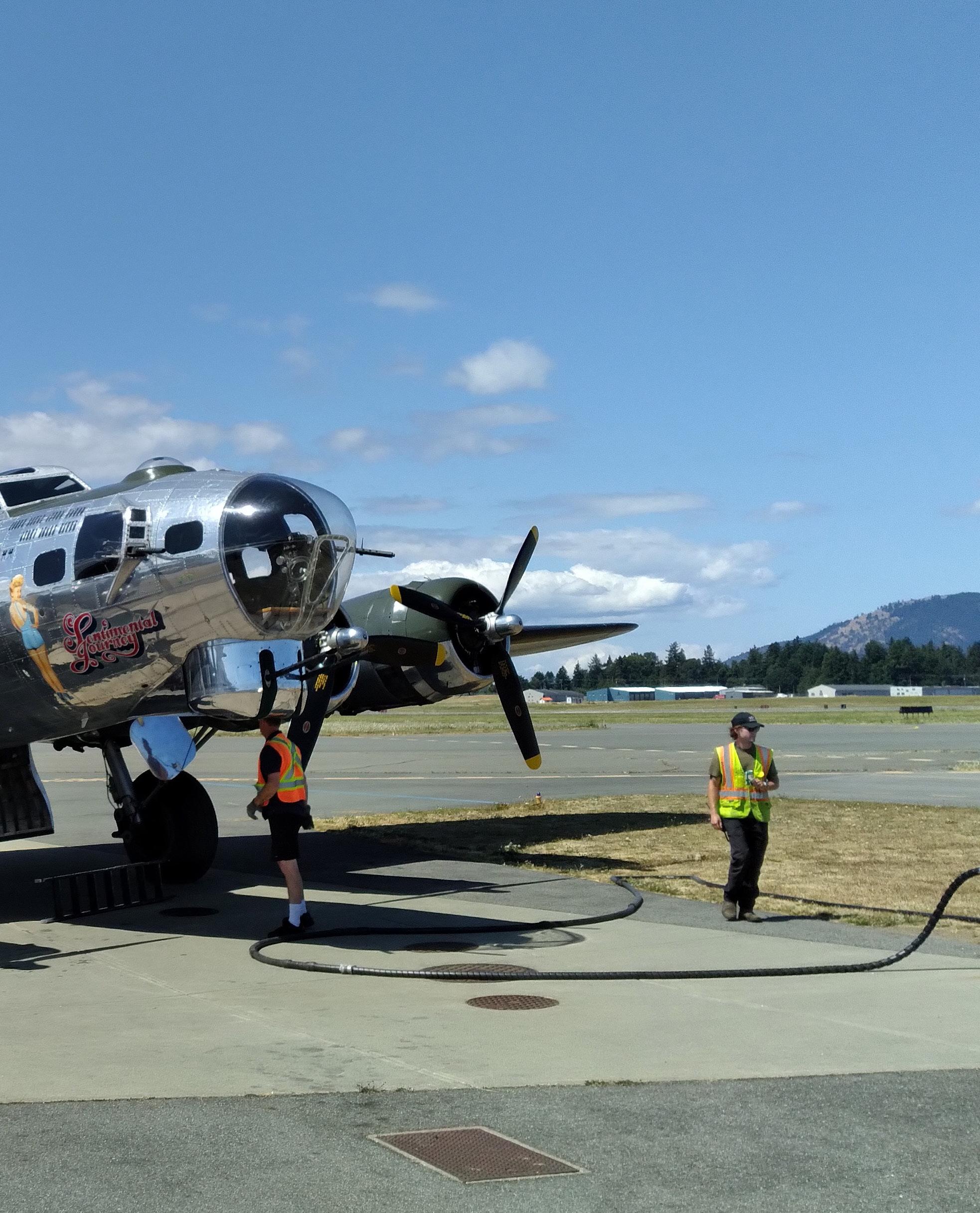 On Sunday the B17 required four of its six fuel tanks topped up, ahead of their departure to Seattle.
