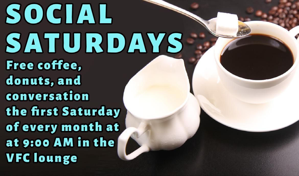 On first Saturday of every month, excluding holidays, the VFC hosts a special morning social event called Social Saturday in the VFC Lounge.