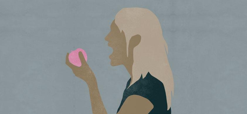 therapie. Ik was bang dat de emoties me zouden overspoelen en de eetlijst ervoor zou zorgen dat ik alleen maar meer eetbuien kreeg en gigantisch veel zou aankomen. In het begin werd mijn eetstoornis inderdaad even sterker. Dit kwam onder andere doordat ik me meer begon te identificeren met de eetstoornis. Het voelde alsof ik dit ‘geheim’ niet meer hoefde te bewaren, omdat het nu toch bekend was dat ik die diagnose had.