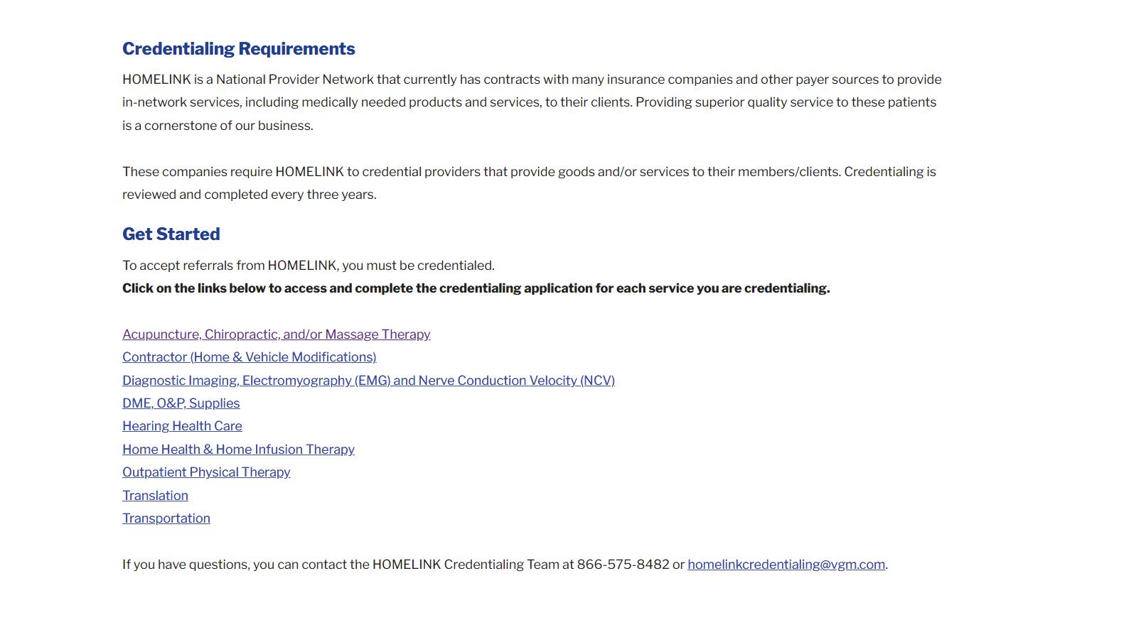 HOMELINK created several links that open online forms for provider credentialing information. The links open in a new window, and will direct you to the formstack platform.