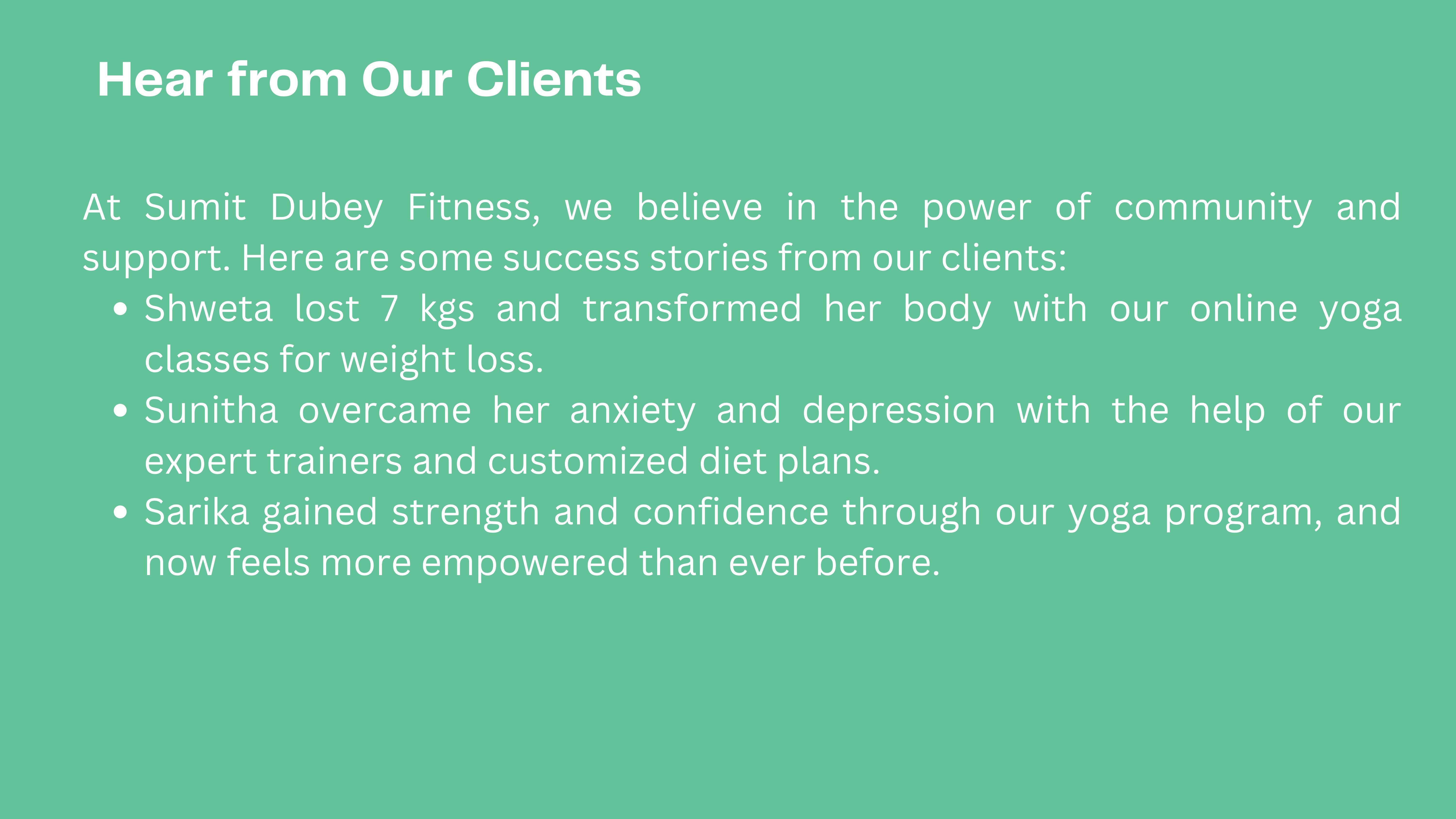 No time for the gym? No problem! Join Sumit Dubey's online yoga classes for weight loss and start your fitness journey from the comfort of your home. Our expert trainers will guide you with simple yet effective workout plans and customized diet plans.