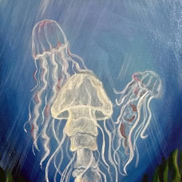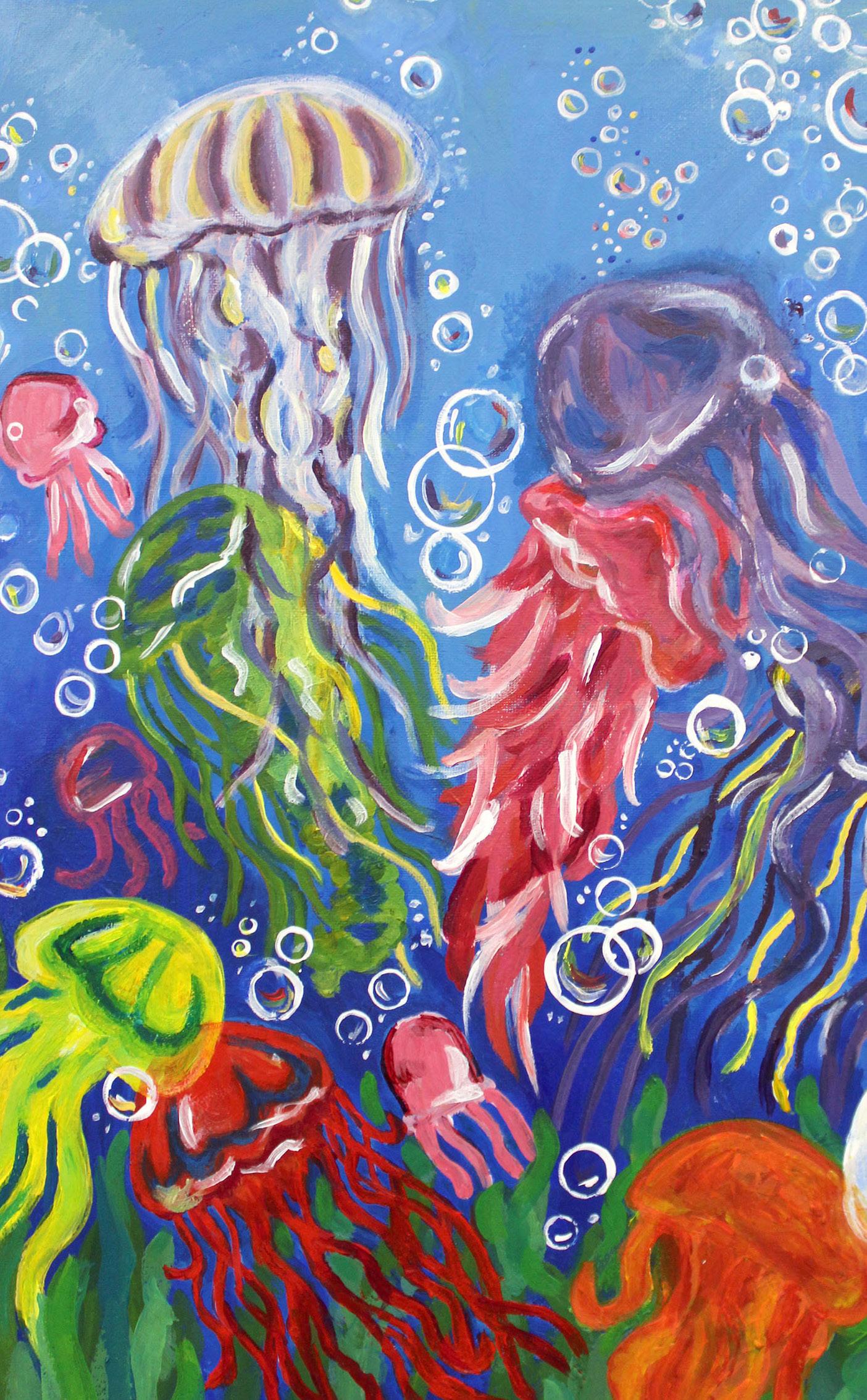 Visit the campus gallery during the summer semester to view works of art made by one of our stunningly talented VHCC community artists, Alesha Russell. Followers of the arts at VHCC will recognize this multi-talented artist from her solos in the choir and her excellent performances in the campus plays. Her paintings are wonderfully delightful, as demonstrated by her winning cover design of jellyfish featured on the Spring 2026 Arts Array Brochure.