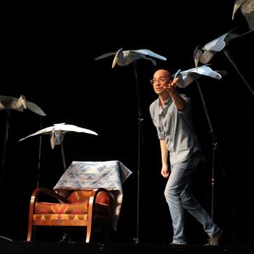 “The Heron’s Journey” is a performance art piece combining spoken storytelling, quilting, paper sculpture, and intentional movement to share an allegory filled with magic, challenges to opposition, and transformation. Meet the title character Lake in various forms of self-discovery on his journey from boy to heron, where he learns about authority, rejection, finding home, and acceptance. Audience members have found themselves deep within the story echoing themes such as immigration, orientation, ability, spiritual freedom, and self-awareness. While some children have enjoyed this program, it is most suitable for mature teenagers through adults because of the themes mentioned above.