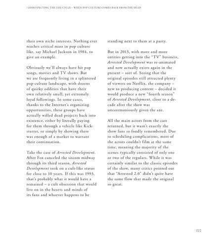 / disr e spec t ing t he life c ycle – w hen pop cu lt u r e come s back from t he de a d