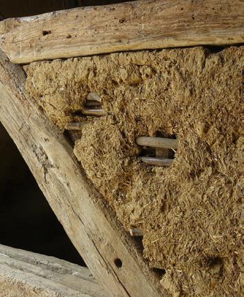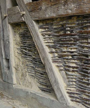 Ganz oben: Das Foto von 1989 zeigt links das Taglöhnerhaus, rechts das Armenhaus. Ende der 80er-Jahre war es noch möglich, das für den Wiederaufbau des Handwerkerhauses (Mitte) verwendete Gerüst nach historischen Vorbildern zu bauen.