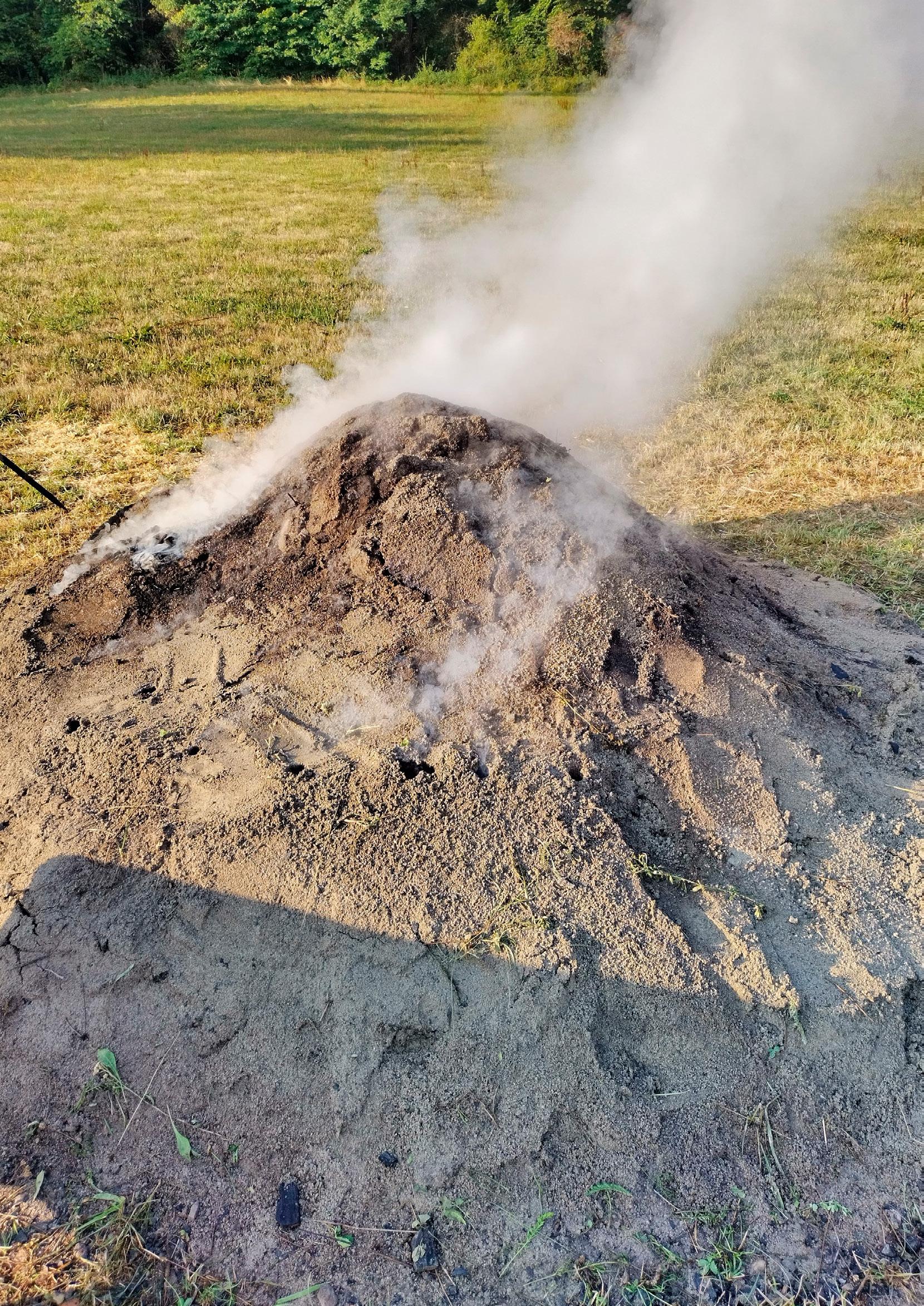 11. August: Aufbau des Meilers | 12. August: Anbrennen | 20. August: Ausräumen des Meilers.