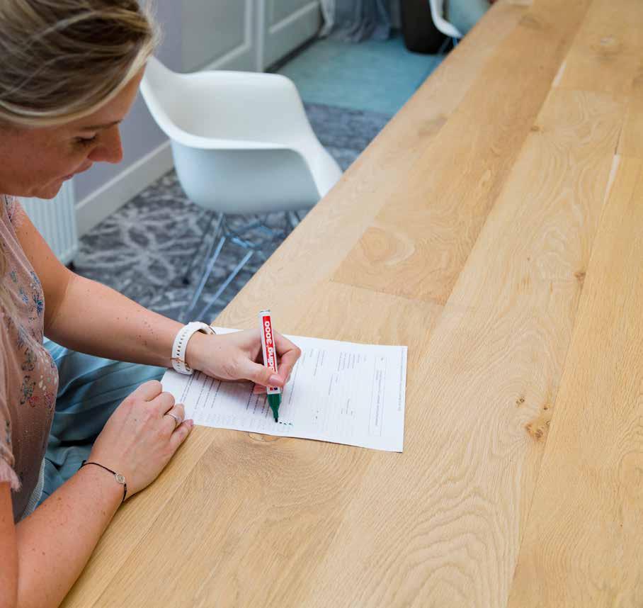 Lesley: ‘Toen de kans zich aandiende om naar een pand te verhuizen dat niet alleen duurzamer is, maar zich ook nog eens ‘midden in de samenleving’ bevindt, besloten we de uitdaging aan te gaan. Spannend, maar wel heel erg leuk! We verhuisden naar een vleugel in een voormalige ROC-school in Deventer, waar we omringd zijn door allerlei andere soorten bedrijven. Kleine zzp’ers, maar ook grotere organisaties. We kregen bovendien de mogelijkheid om onze nieuwe plek helemaal zélf te gaan vormgeven en in lijn te brengen met onze kernwaarden. En dit deden we samen: ons hele team mocht meedenken over de aankleding van de vleugel. Zo werd de kleur van de vloer bepaald door middel van een stemronde, waarbij de meeste stemmen golden.