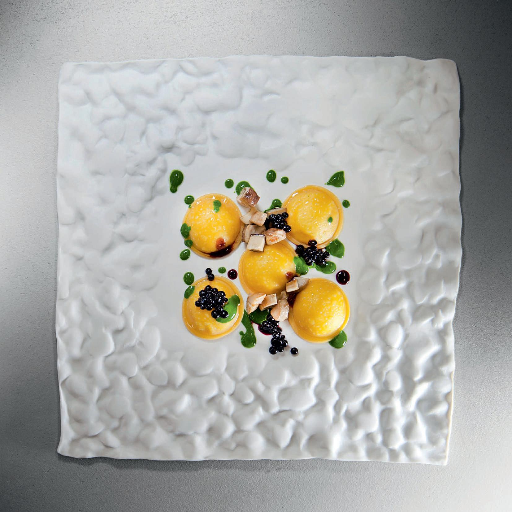 La rarità di ogni nostra opera accompagna così l’esclusività di ogni creazione, ed è soltanto questa tensione verso l’armonia di piatto e portata, di contenitore e contenuto, a suscitare in noi che ci accostiamo alla tavola, suggestioni ed emozioni, una dolce sintesi che ci coinvolge in un’esperienza dei sensi irripetibile.
