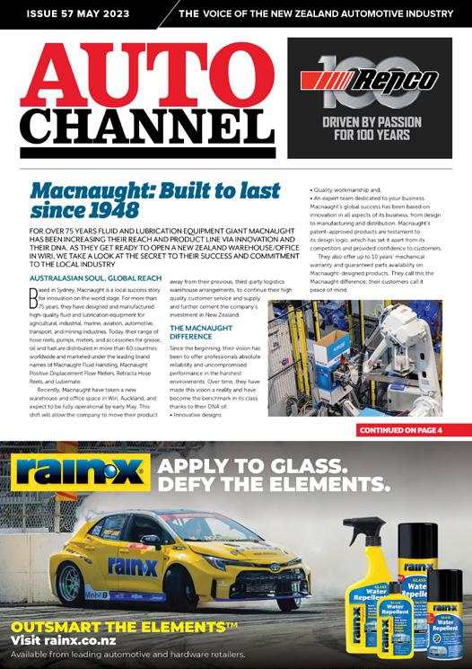 OUTSMART THE ELEMENTS™ Visit rainx.co.nz Available from leading automotive and hardware retailers. APPLY TO GLASS. DEFY THE ELEMENTS. ISSUE 57 MAY 2023 THE VOICE OF THE NEW ZEALAND AUTOMOTIVE INDUSTRY