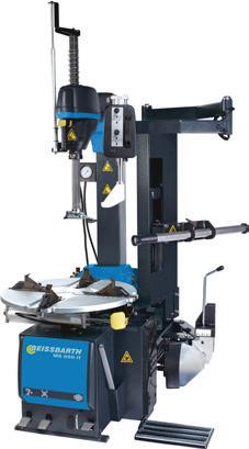 Automatic tyre changer Space Saver R with right rotation dedicated to Mobile Service featuring a post working with side rotation. The innovation of this side swing post, with auto pneumatic rotation, ensures reduced operating dimensions that are perfect for use in a van.