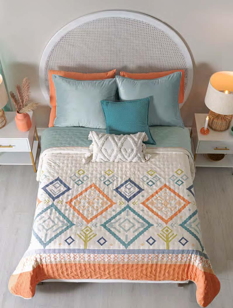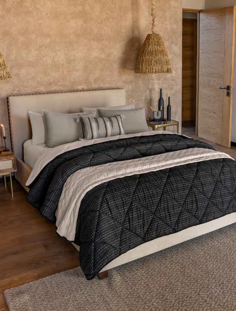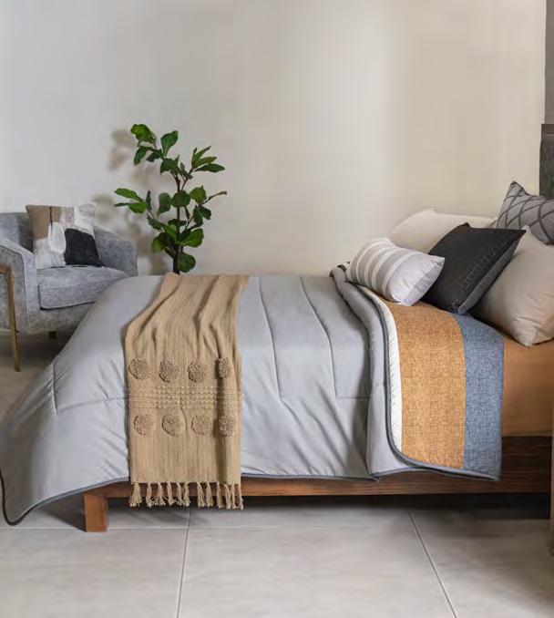 Una solución de diseño mexicano con un toque moderno y sofisticado que te darán las texturas y colores de este edredón.