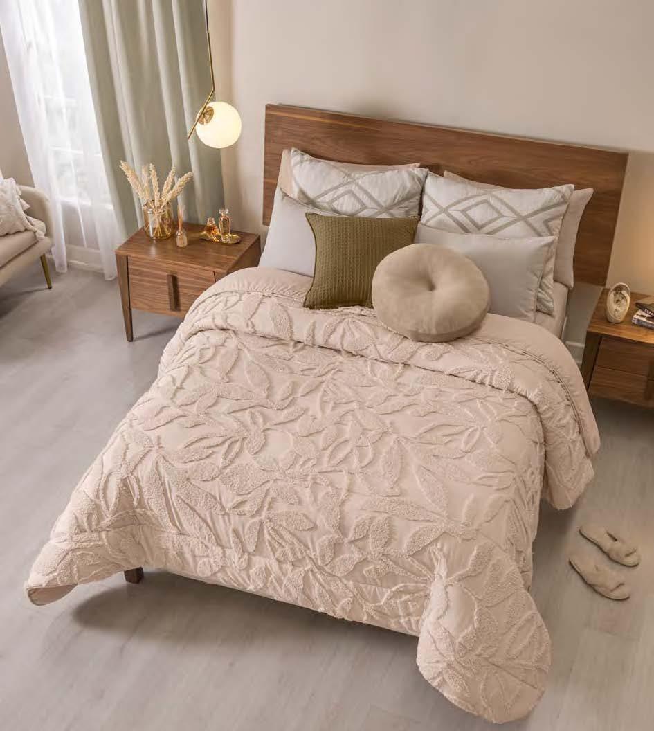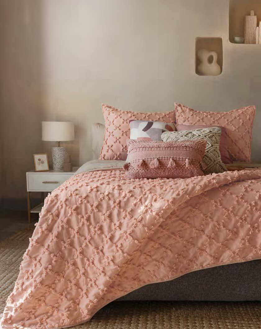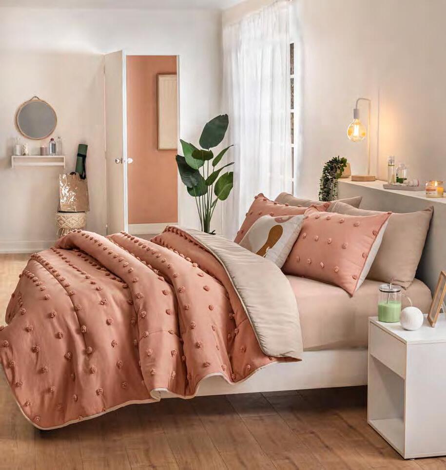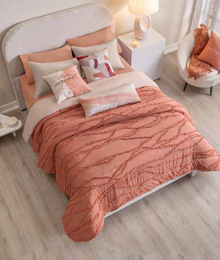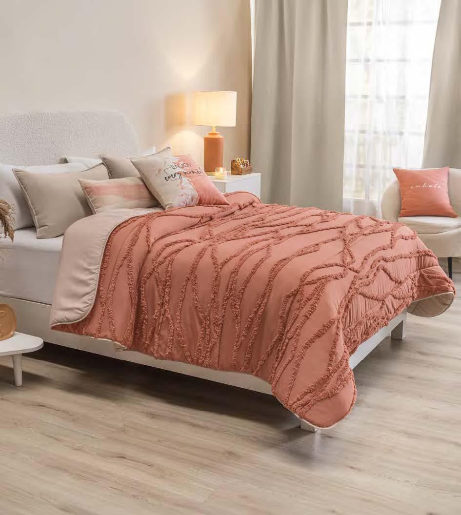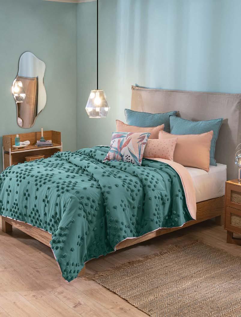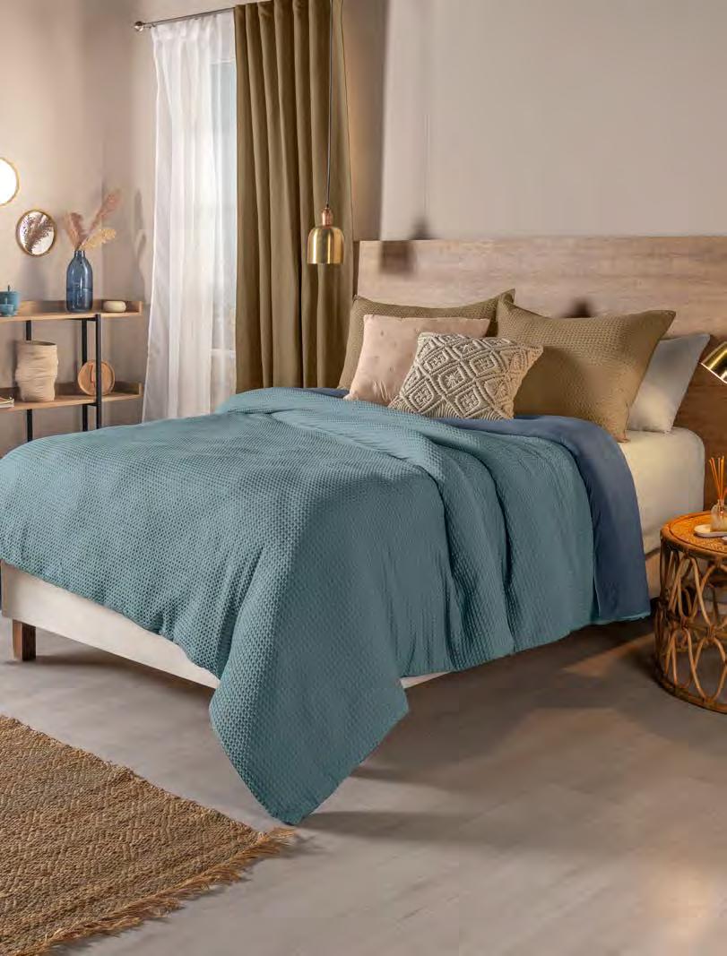 Su tela delicadamente tejida hace de este edredón la mejor combinación entre color, textura y confort que transformará cualquier habitación.
