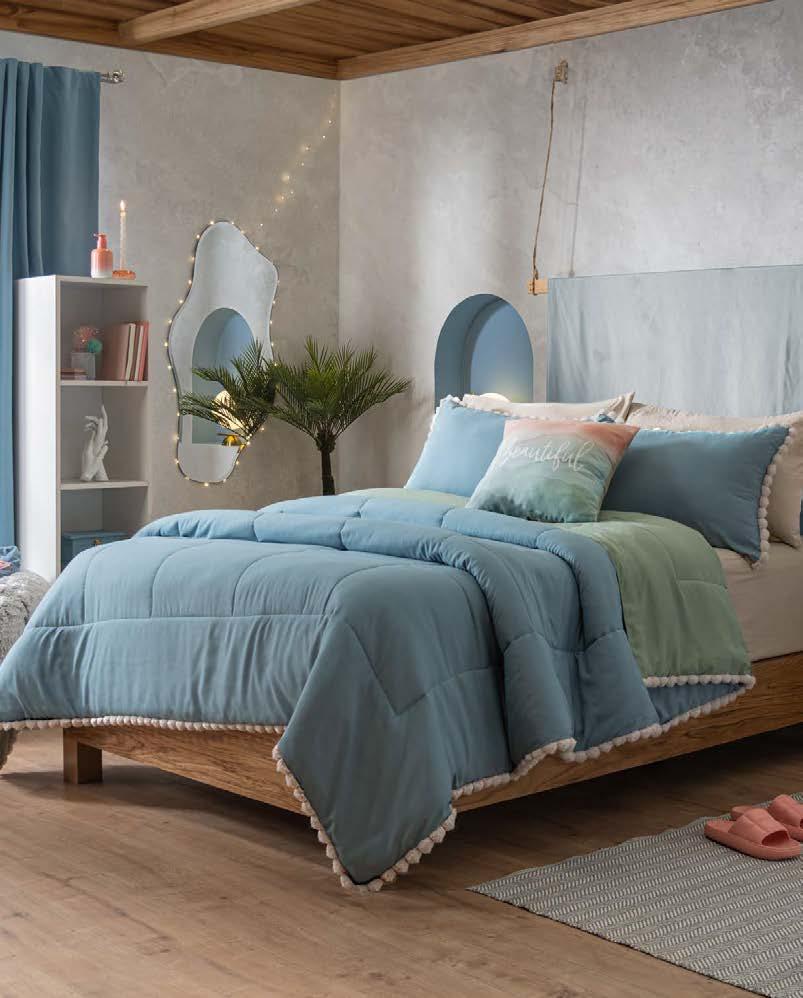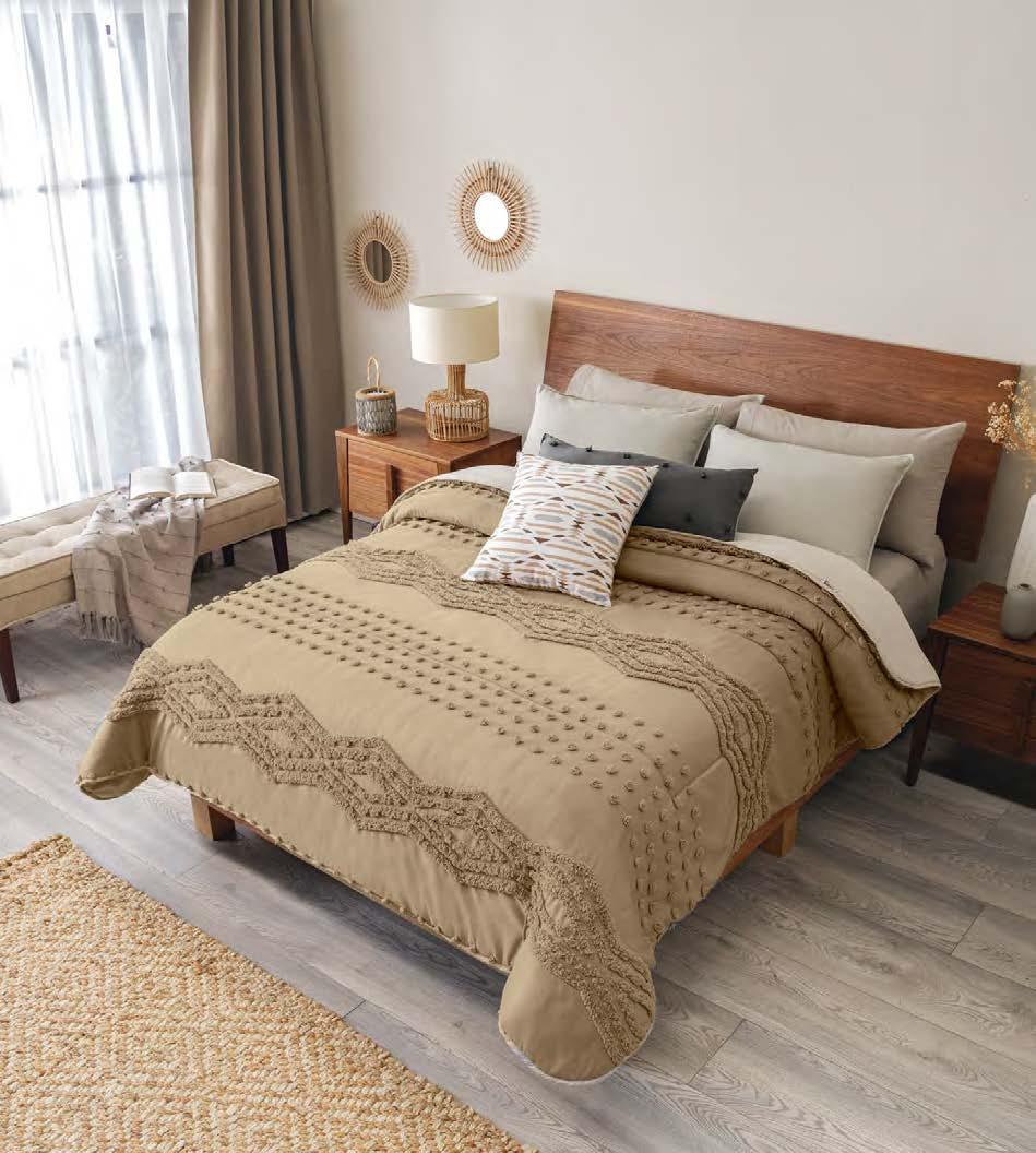 Conoce la amplia variedad de productos para tu cama; estampados, con texturas en tonos lisos o terminados especiales que levantarán el look de tu habitación.